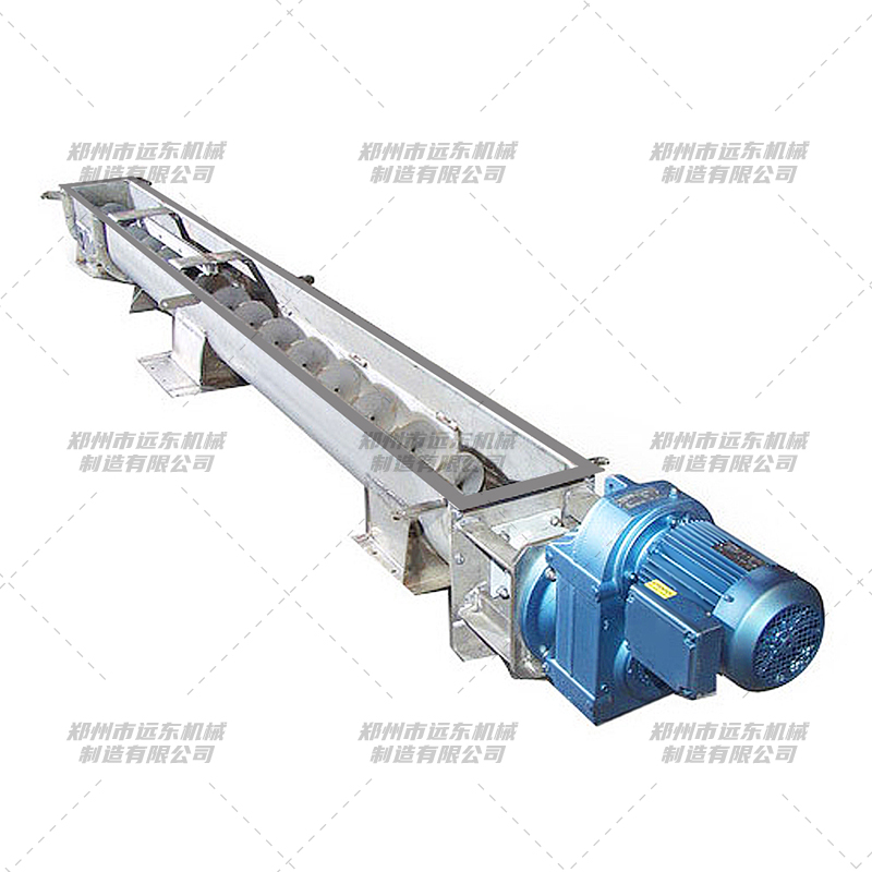 1、傳動裝置:采用擺線針輪減速機或硬齒面軸裝齒輪減速機。驅(qū)動裝置在設(shè)計時應(yīng)盡量設(shè)置在物料出口處,使螺旋在運行時處于受拉狀態(tài)。